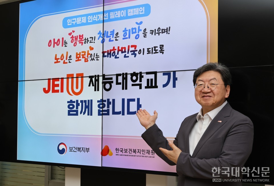[한국대학신문 심정은 기자] 이남식 재능대학교 총장이 인구문제에 대한 사회적 관심을 촉구하기 위해 ‘인구문제 인식개선 릴레이 캠페인’에 동참했다.
