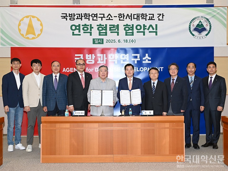[한국대학신문 박인규 기자] 한서대학교(총장 함기선)는 지난 18일, 대전에서 국방과학연구소와 미래국방기술 개발 및 교류 협약(MOU)을 체결했다. 국방과학연구소는 방위사업청 산하 공공기관으로 국내 유일의 국방연구개발 기관이다. 이번 협약의 목적은 한서대와 국방과학연구소가 상호 협력하여 국가과학기술 분야의 발전을 도모하고, 미래 사회의 중추적 역할을 담당할 우수 인력을 양성, 확보하는 것이다.