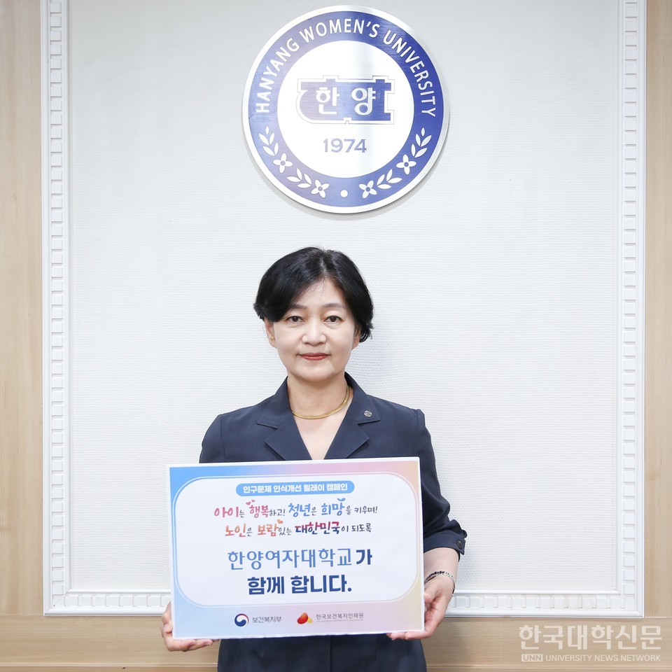 [한국대학신문 정수정 기자] 한양여자대학교(총장 나세리)는 나세리 총장이 지난 18일 인구문제에 대한 사회적 인식 제고를 위한 ‘인구문제 인식개선 릴레이 캠페인’에 참여했다고 밝혔다.