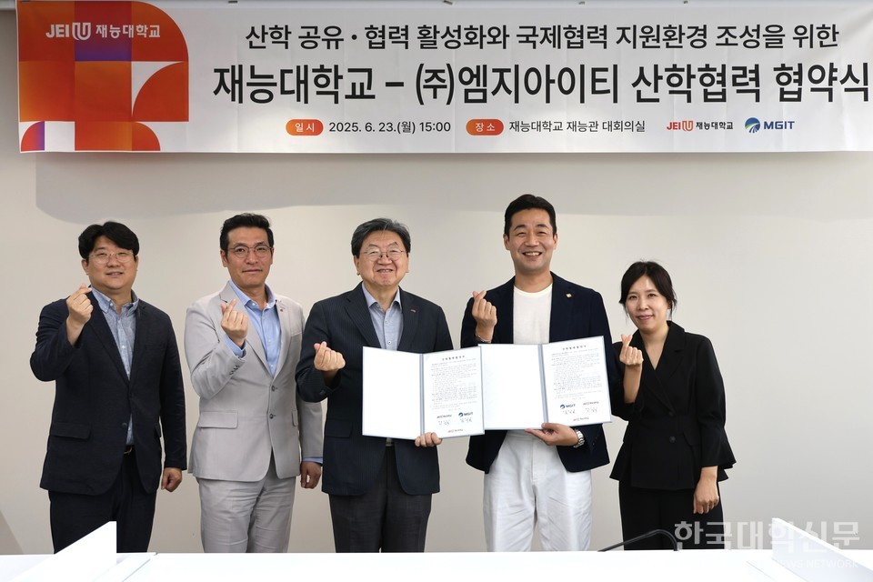 [한국대학신문 정수정 기자] 재능대학교(총장 이남식)는 지난 6월 23일 산업용 드론 전문기업 ㈜엠지아이티와 드론 분야 인재 양성과 기술 개발, 취업 연계를 위한 업무협약을 체결했다.