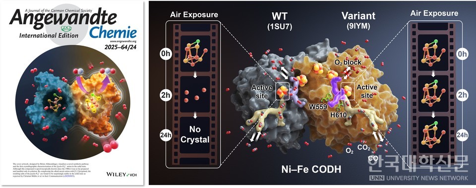 [한국대학신문 문화춘 기자] 가톨릭대학교(총장 최준규) 생명공학과 김석민 교수 연구팀이 UNIST 에너지화학공학과 김용환 교수, 서울대 화학과 이형호 교수와 공동 연구를 통해 공기 중에서도 안정적으로 작동하는 금속 기반 생촉매를 세계 최초로 개발했다.
