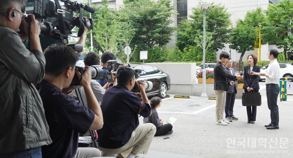 [한국대학신문 한명섭 기자] 이재명 정부 첫 교육부 장관 후보자로 지명된 이진숙 전 충남대 총장이 30일 청문회 준비사무실이 있는 서울 여의도 한국교육시설안전원에 첫 출근했다.
