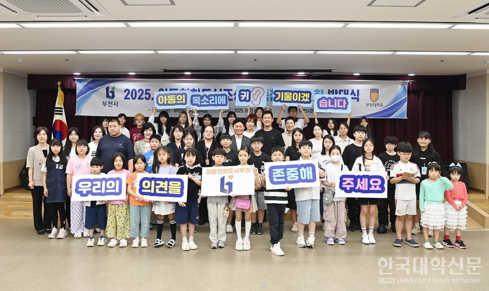 [한국대학신문 이서혜 기자] 부천대학교 아동보육과(총장 한정석)는 지난달 21일 부천시청 소통마당에서 ‘2025년 부천시 아동친화도시 조성을 위한 아동참여위원회 발대식’을 성황리에 마쳤다고 2일 밝혔다. 이날 행사에는 부천시 거주 초∙중학생 30여 명과 학부모, 아동보육과 교수진(장정호 교수, 황인주 교수, 강인숙 교수)과 재학생 학생 멘토 14명, 시 관계자 등 70여 명이 참석했다. 특히 이 자리에는 조용익 부천시장이 참석해 아동참여위원들에게 위촉장을 수여하고 아동보육과 학생 멘토들과 학부모, 아동보육과 교수진 등을 직접 격려했다.