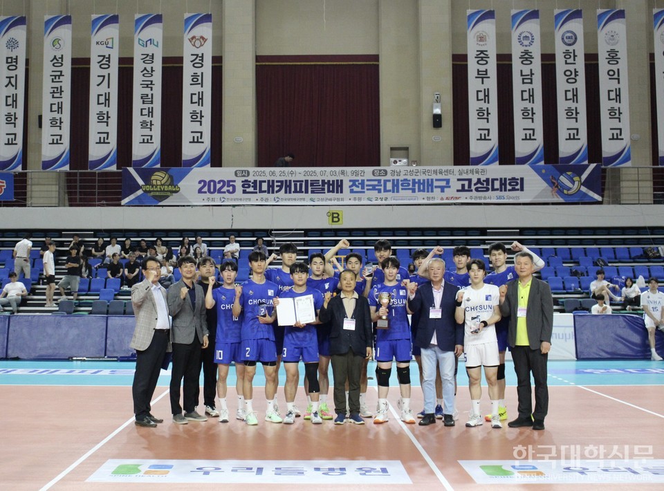 [한국대학신문 이정환 기자] 조선대학교(총장 김춘성) 배구부가 지난 3일 경상남도 고성에서 끝난 ‘제23회 2025 현대캐피탈배 전국대학배구 고성대회’ 에서 창단 이래 첫 전국대학배구대회 우승을 차지했다.