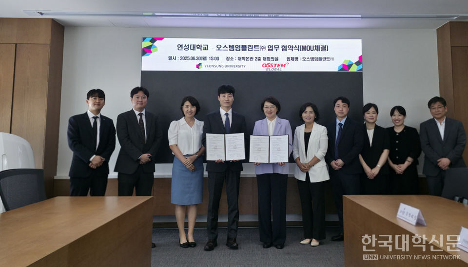 [한국대학신문 이서혜 기자] 연성대학교(총장 권민희)는 최근 오스템임플란트㈜와 치과 교육을 중심으로 한 전략적 업무제휴 협약을 체결했다고 7일 밝혔다. 이번 협약식은 양 기관이 상호 신뢰와 존중을 바탕으로 치과 교육 및 관련 행사에 대한 협력을 강화하고, 상생의 시너지를 창출하기 위한 취지에서 마련됐다.