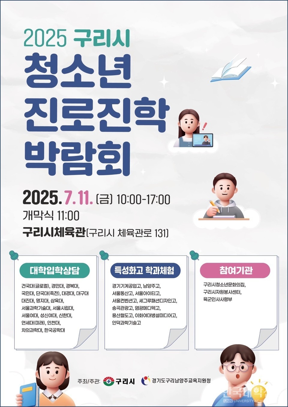 [한국대학신문 심정은 기자] 대경대학교 남양주 캠퍼스(한류 캠퍼스)가 오는 11일 구리시체육관에서 개최되는 2025 청소년 진로진학박람회에 3개 학과가 참여해 특화된 학과 체험프로그램을 진행한다고 밝혔다.