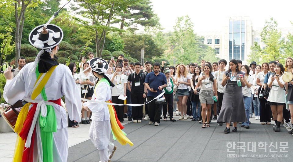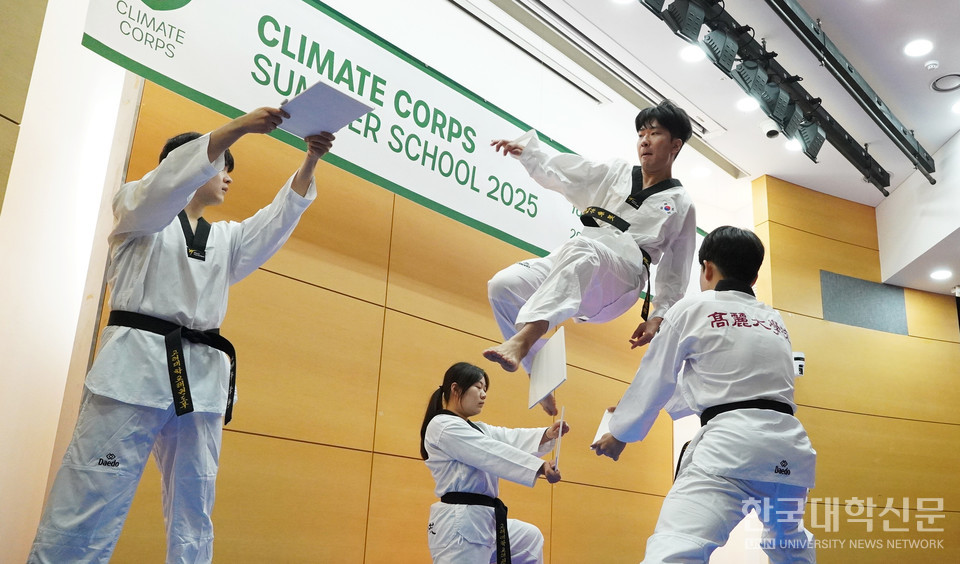 [한국대학신문 한명섭 기자] 기후위기 대응을 위해 고려대를 찾은 글로벌 인재들이 7일 열린 개막식에서 펼쳐진 농악과 태권도에 매료됐다.