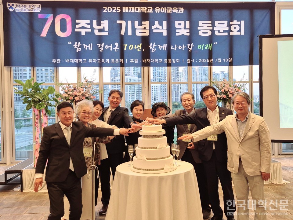 [한국대학신문 이정환 기자] ‘한국 유아교육의 요람’인 배재대학교 유아교육과가 학과 설립 70주년을 맞아 기념식을 열고 동문 화합의 장을 마련했다. 배재대 유아교육과가 주관하고 배재대 총동창회가 후원한 기념식은 ‘함께 걸어온 70년, 함께 나아갈 미래’를 주제로 10일 대전 라도무스아트센터에서 김욱 배재대 총장, 임용혁 배재대 총동창회장, 양승지 배재대 유아교육과 동문회장, 조원휘 대전시의회 의장, 서지원 대전서구의회 의원, 재학생 및 동문 등 300여명이 참석한 가운데 성황리에 열렸다.