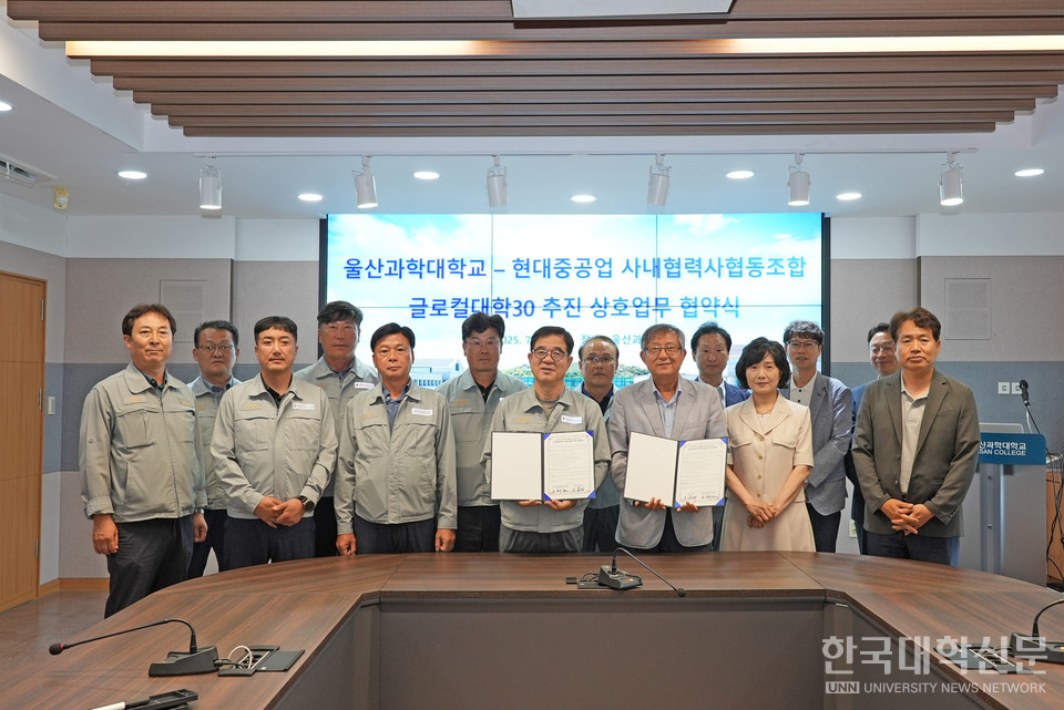 [한국대학신문 심정은 기자] 울산과학대학교(총장 조홍래)가 15일 오전 울산과학대 동부캠퍼스 행정본관 2층 교무회의실에서 HD현대중공업 사내 협력사 협동조합과 교육부의 글로컬대학30사업 공동 추진을 위한 업무협약을 체결했다.
