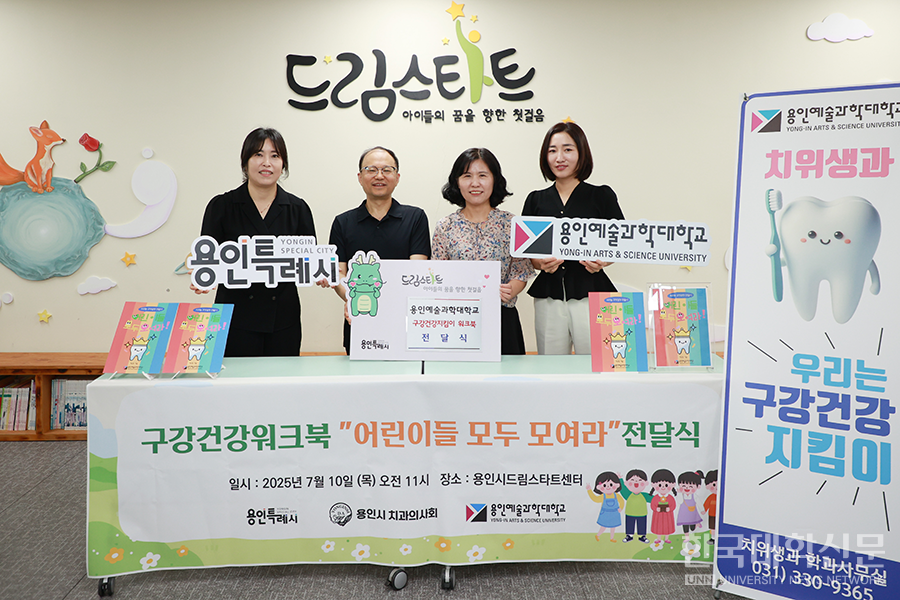 [한국대학신문 김영성 기자] 용인예술과학대학교 치위생과에서는 지난 10일 어린이 구강건강 생활 실천 증진을 위해 교육용 워크북 《어린이들 모두 모여라》300부를 제작해 용인특례시 아동보육과에 전달했다고 15일 밝혔다.