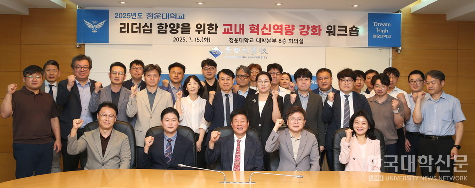 [한국대학신문 박인규 기자] 청운대학교(총장 정윤)는 15일 대학본부 8층 회의실에서 교무위원, 행정부서 팀장 등 50여 명이 참석한 가운데 ‘2025 리더십 함양을 위한 혁신역량 강화 워크숍’을 성황리에 개최했다고 밝혔다.