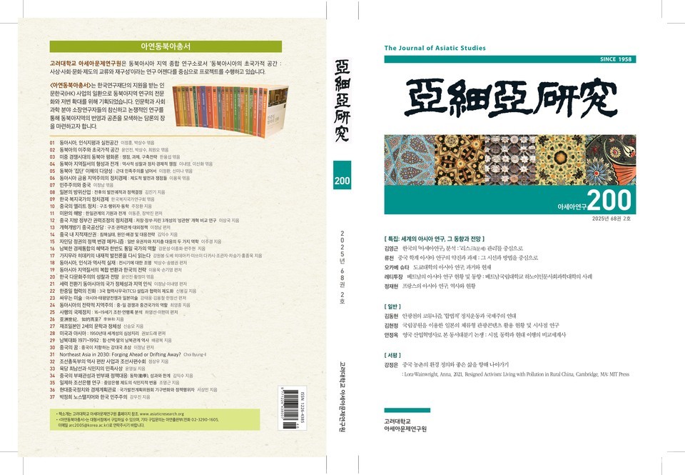 〈아세아연구〉는 1958년 3월 창간 이래 고려대 아세아문제연구원이 매년 꾸준히 발간하는 간행물로, 단일 연구소에서 발행하는 국내 최장수 아시아 연구 학술지이다. 해당 학술지는 전 아시아의 정치, 경제, 역사, 문화를 인문학과 사회과학 관점에서 종합적으로 다루며, ‘아시아인을 위한 아시아 연구’라는 창간 취지를 이어왔다.