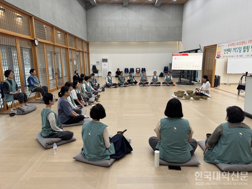 [한국대학신문 김연주 기자] 동국대학교 WISE(와이즈)캠퍼스 선센터가 지역민의 마음 건강 지원과 선·명상 문화 확산을 위해 '1박 2일 힐링 선·명상 프로그램'을 운영했다.