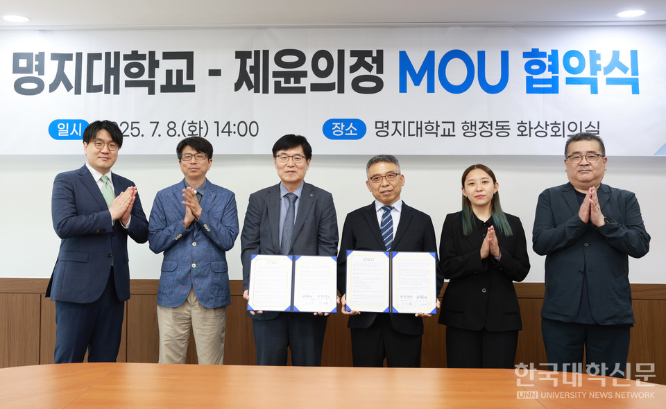 [한국대학신문 박인규 기자] 명지대학교(총장 임연수)는 지방자치 전문 교육을 위한 대학원 신설 학과인 ‘자치입법학과’ 설치·운영을 위해, 의회전문기관 ‘제윤의정’과 업무협약(MOU)을 체결했다. 협약식은 지난 8일 명지대 인문캠퍼스 행정동 3층 화상회의실에서 열렸다.