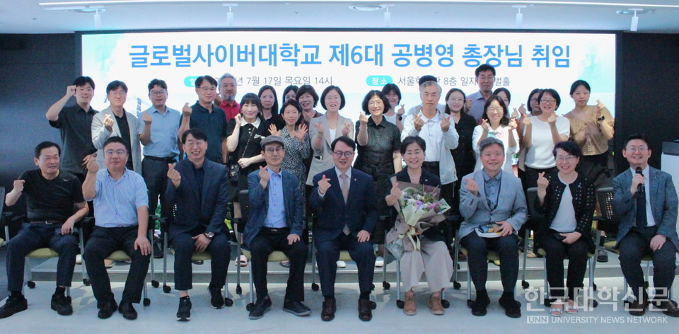 [한국대학신문 이정환 기자] 글로벌사이버대학교가 17일 압구정 서울학습관 일지글로벌홀에서 제6대 총장 취임식을 개최했다. 제5대에 이어 제6대 총장으로 연임하게 된 공병영 총장은 앞으로 대학의 미래 비전과 혁신을 이끌어갈 각오를 밝혔다.