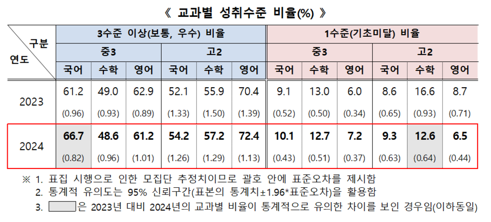 ‘2024년 국가수준 학업성취도 평가’ 결과 발표