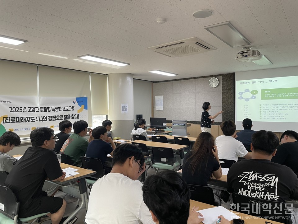 이번 ‘진로미래지도’ 프로그램은 이들 사전 프로그램의 연장선에서 마련된 심화형 교육으로, 고등학생들이 진로에 대한 주도성을 가지고 자신에게 적합한 직업을 탐색할 수 있도록 자기이해와 진로설계 과정에 중점을 두고 기획됐다. 주요 내용은 △자기 이해의 중요성 인식 △직업가치관 탐색 △직업선호도검사(S형) 결과 해석 △유형별 적합 직업 분석 △진로결정을 위한 실천 계획 수립 △취업목표 설정 등 단계별 진로 설계 활동으로 구성됐다.