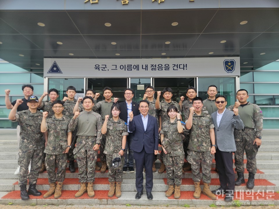 이번 방문에는 김문섭 교학부총장을 비롯해 이영익 학생부처장, 배종길 ROTC 동문회장, 김태현 학군단장이 동행했으며, 육군학생군사학교장 권한대행인 김용수 교육여단장(학군 33기)과 접견을 갖고, 양 기관 간 상호 협력 방안에 대해 논의했다. 이어 학군단 후보생들을 위한 위문금을 전달하며 따뜻한 격려의 메시지도 전했다.