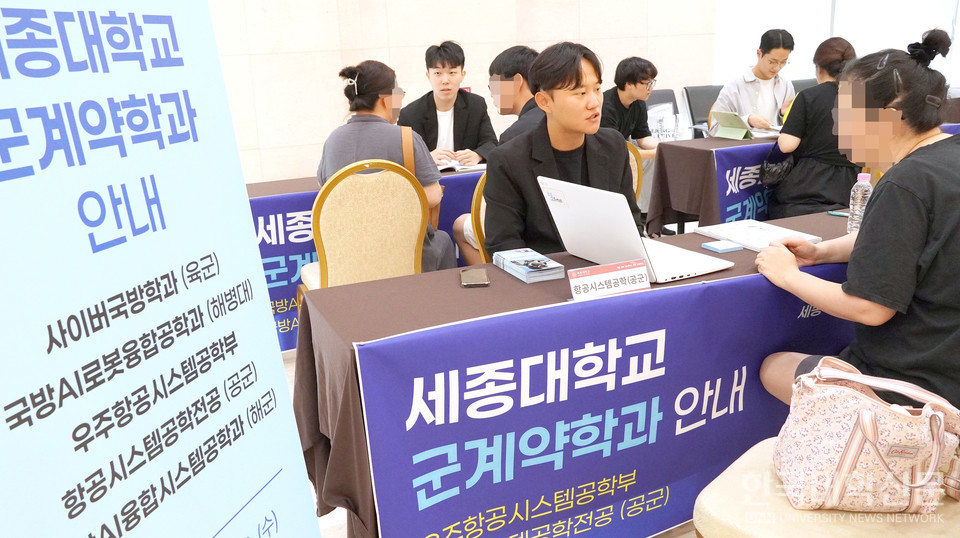 이 날 행사에는 1대1 학부모 입시상담과 함께 구체적인 진로설계를 위한 군계약학과 안내부스를 별도로 마련해 첨단 국방분야 진출 희망 학생들에게 세부 입학정보를 제공했다.(맨 위)