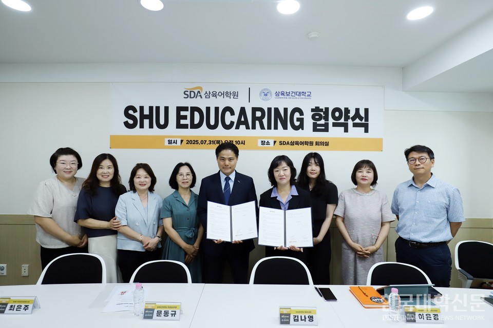 [한국대학신문 정수정 기자] 삼육보건대학교(총장 박주희) EDUCARING 협약체는 지난 31일 SDA삼육어학원 서울본원과 지역 영유아의 전인적 성장과 가족의 삶의 질 향상을 위한 업무협약을 체결했다.