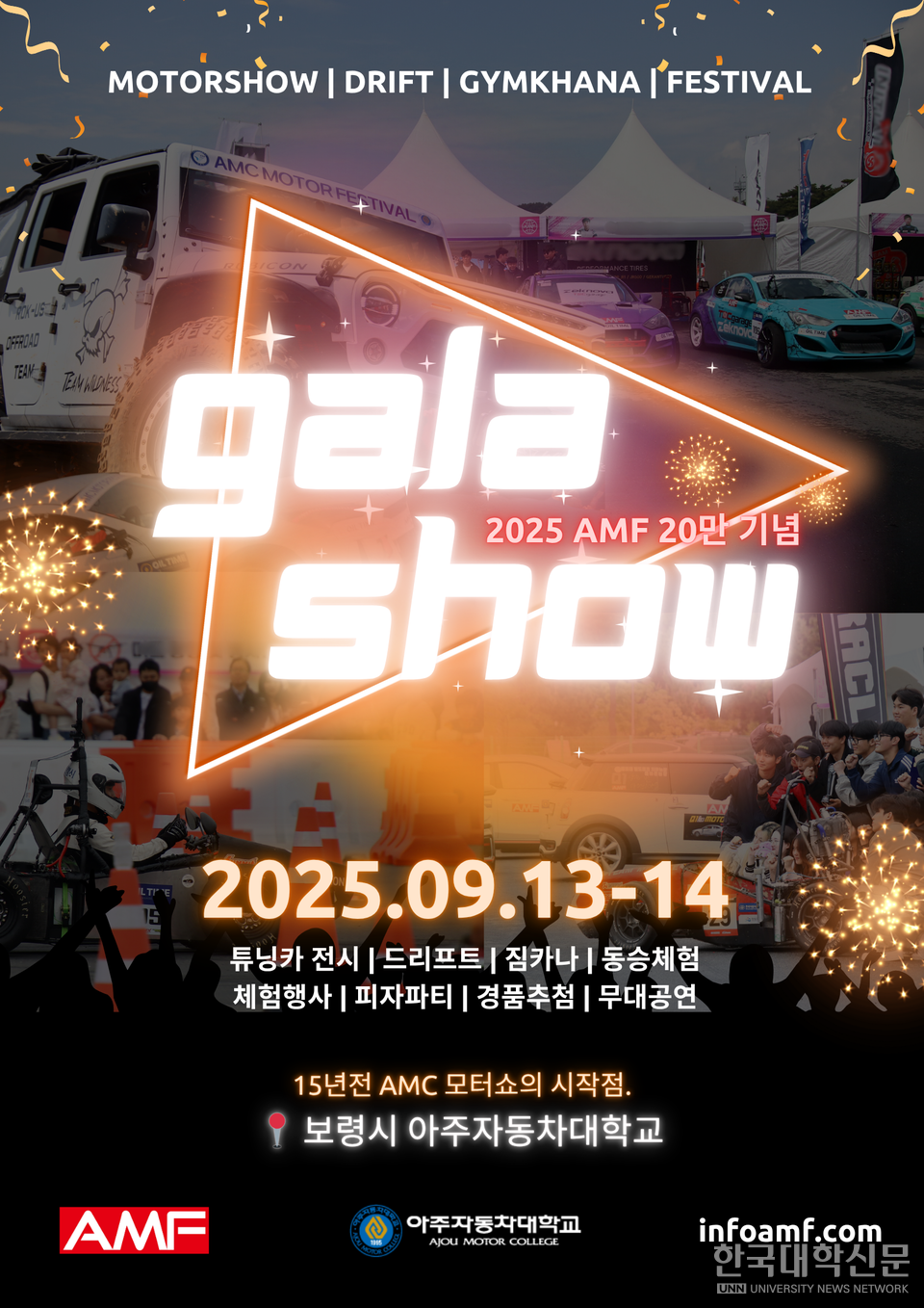 [한국대학신문 이정환 기자] 아주자동차대학교(총장 한명석)는 오는 9월 13일(토)과 14일(일) 양일간, ‘AMC 모터페스티벌 갈라쇼(이하 AMF 갈라쇼)’를 개최한다고 밝혔다.