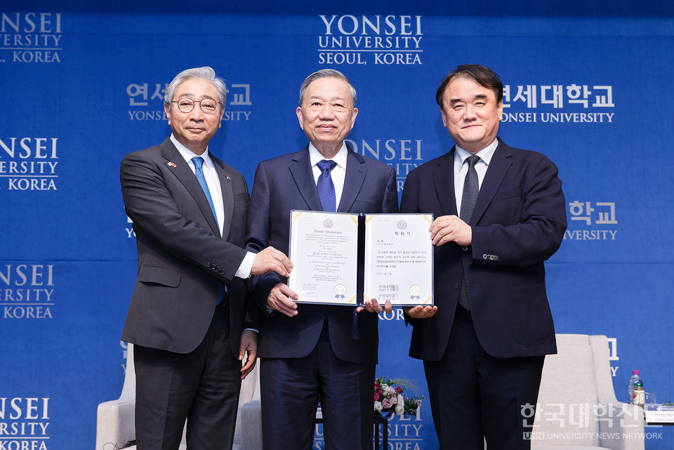 [한국대학신문 이정환 기자] 연세대학교(총장 윤동섭)는 11일 경영관 용재홀에서 또 럼(To Lam) 베트남 공산당 중앙집행위원회 서기장에게 명예정치학박사 학위를 수여했다.