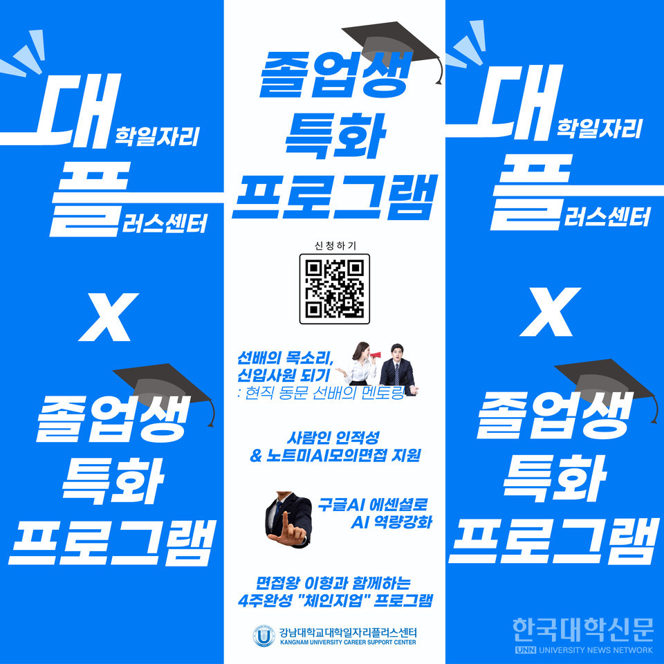강남대 대학일자리플러스센터 이상호 센터장은 “졸업 이후에도 우리 대학 학생들이 취업에 실질적인 도움을 받을 수 있도록 다양한 특화 프로그램을 꾸준히 운영할 계획”이라며 “선배들의 생생한 구직활동 경험을 통해 취업의 방향을 잡고 싶은 졸업생들의 많은 참여를 기대한다”라고 전했다.