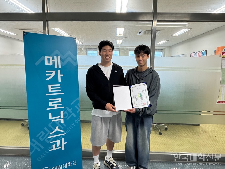 [한국대학신문 김영성 기자] 대림대학교 메카트로닉스과 신하람·김강현 학생팀이 ‘2025 제5회 전국 대학교 이그나이트 스토리텔링 경진대회’에서 장려상을 수상했다. 이번 대회는 대한전자공학회 산업전자소사이어티, (주)아이티센 엔텍, ITC 로봇문화협회가 공동 주관했다.