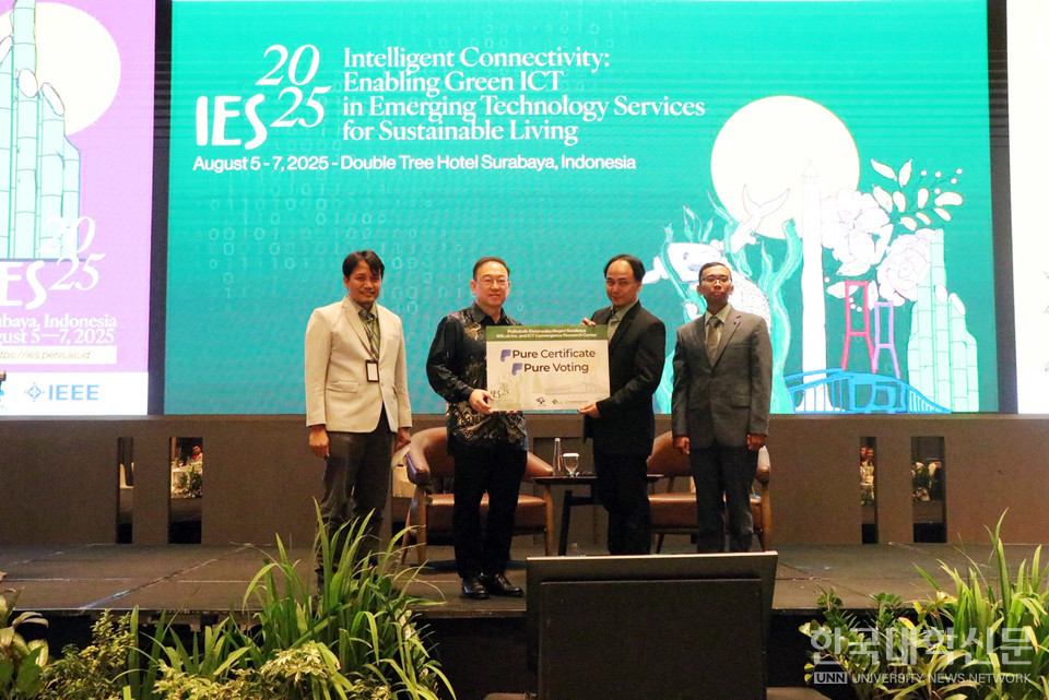 앞서 김동성 국립금오공대 ICT융합특성화연구센터장은 인도네시아에서 열린 ‘2025 국제전자심포지엄(이하 IES 2025)’의 기조연설자로 초청됐다. ‘산업용 블록체인 응용: 퓨어체인과 퓨어엣지(Industrial Blockchain Application: Pure Chain and Pure Edge)’를 주제로 발표를 진행했으며, 연설 뒤 이어진 기증식에서 자체 개발한 블록체인 기반 인증 시스템인 ‘퓨어서티피케이트’와 ‘퓨어보팅 시스템’을 공식 기증했다.