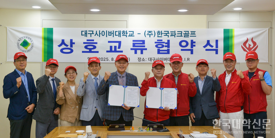 [한국대학신문 이정환 기자] 대구사이버대학교(총장 이근용)와 ㈜한국파크골프(회장 장세주)는 지난 12일 대구사이버대 본관 C.I.R 회의실에서 파크골프 저변 확대와 전문인력 양성을 위한 상호교류 협약을 체결했다.