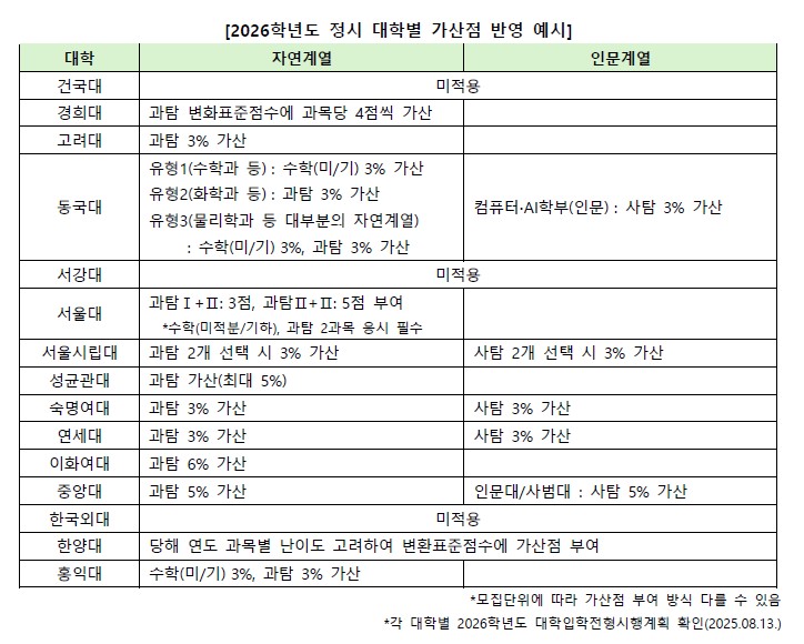 정시, 가산점과 효율성 고려해 유리한 과목 선택 필수