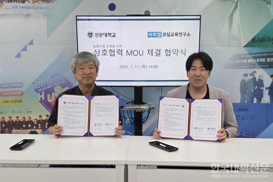 [한국대학신문 김윤미 기자] 선문대학교 산학협력단(단장 이희원)과 비피랩 코딩교육연구소(대표 권기동)가 지난달 17일, 아산시가 주관하는 ‘지역맞춤형 늘봄 지원사업’의 성공적인 추진을 위해 업무협약(MOU)을 체결했다고 밝혔다.