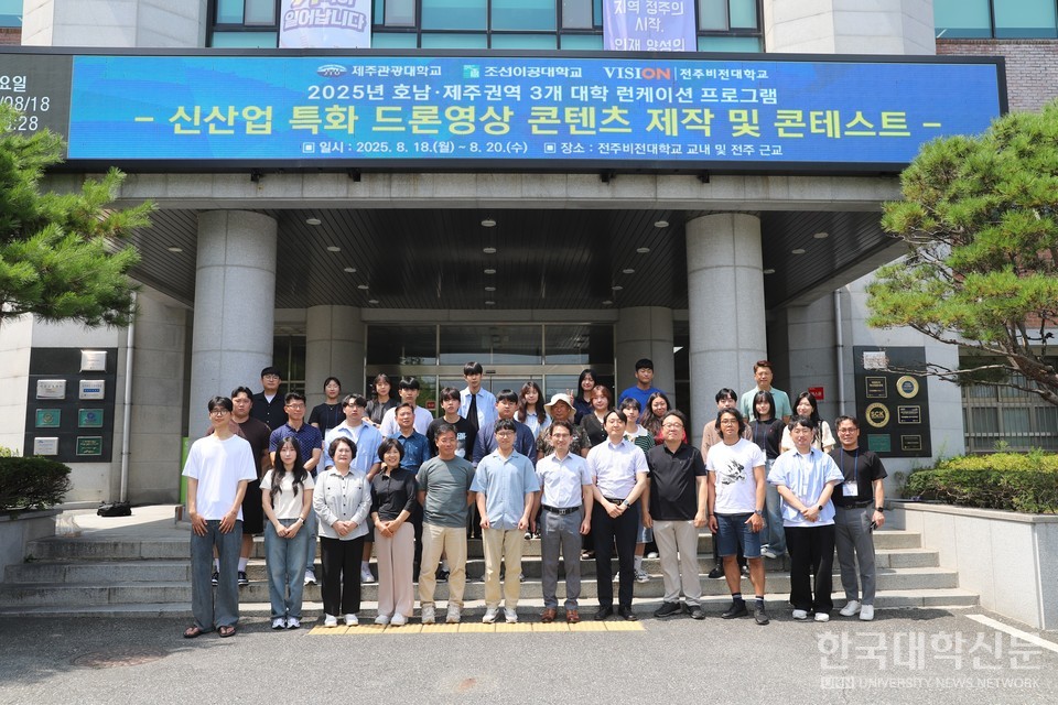 [한국대학신문 김영성 기자] 전주비전대학교(총장 우병훈)는 지난 18일부터 20일까지 3일간 조선이공대학교, 제주관광대학교와 함께 ‘2025년 호남‧제주권 3개 대학 런케이션 프로그램 – 신산업 특화 드론 영상 콘텐츠 제작 및 콘테스트’를 개최했다고 밝혔다.