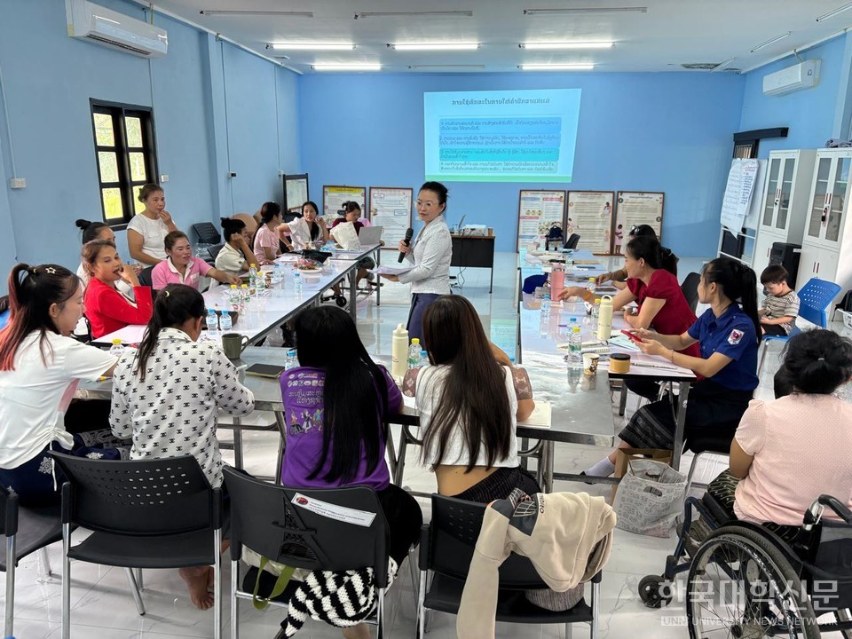 [한국대학신문 김영성 기자] 서울여자간호대학교(총장 김숙영) ODA 연구팀(사업책임자 이윤정 교수)이 지난 8일 라오스 비엔티안 여성장애인협회(Women With Disabilities Association, WWDA) 모자보건교육센터에서 ‘마을 임신·출산케어요원 보수교육’ 수료식을 개최했다.