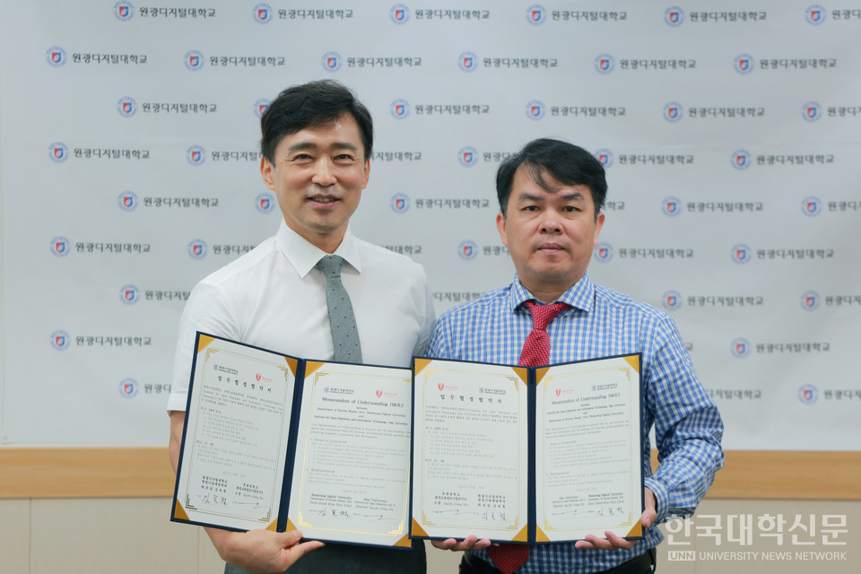 [한국대학신문 이용현 기자] 원광디지털대학교(총장 김윤철)는 지난 22일, 서울캠퍼스에서 베트남 후에대학교 원격교육정보기술연구소(소장 응우옌 호앙 선)와 단체협약(MOU)을 체결했다고 25일 밝혔다. 이번 협약은 양 기관이 교육과 연구 분야에서 상호 협력을 강화하기 위해 마련됐다.