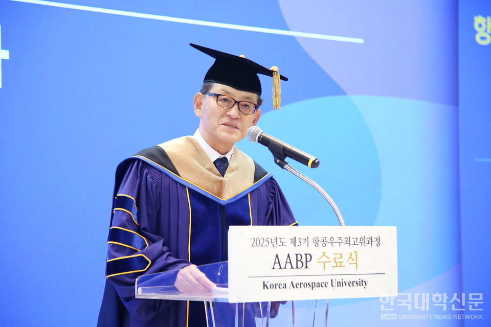 [한국대학신문 박인규 기자] 한국항공대학교가 27일 교내 항공우주센터 2층 비전홀에서 ‘항공우주 최고위 과정(Aerospace Advanced Business Program·AABP)’ 제3기 수료식을 개최했다. 이번 수료식에는 대학 관계자를 비롯해 정부, 산업계, 학계 주요 인사와 3기 원우들이 함께해 지난 6개월간의 성과를 돌아보고 수료를 축하했다.