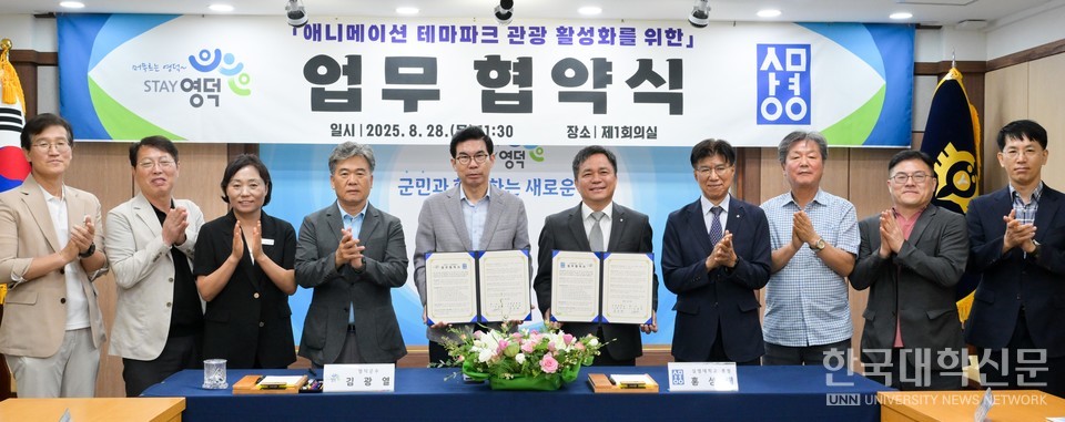 [한국대학신문 이정환 기자] 상명대학교(총장 홍성태)와 경상북도 영덕군(군수 김광열)은 28일 영덕군청 회의실에서 영덕군 애니메이션테마파크 조성 협력 등 애니메이션 및 만화웹툰 산업 육성과 지역 문화관광 활성화를 위해 업무협약(MOU)을 체결했다.