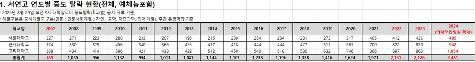 종로학원 ‘2024년 서연고 중도탈락자수 분석’ 발표