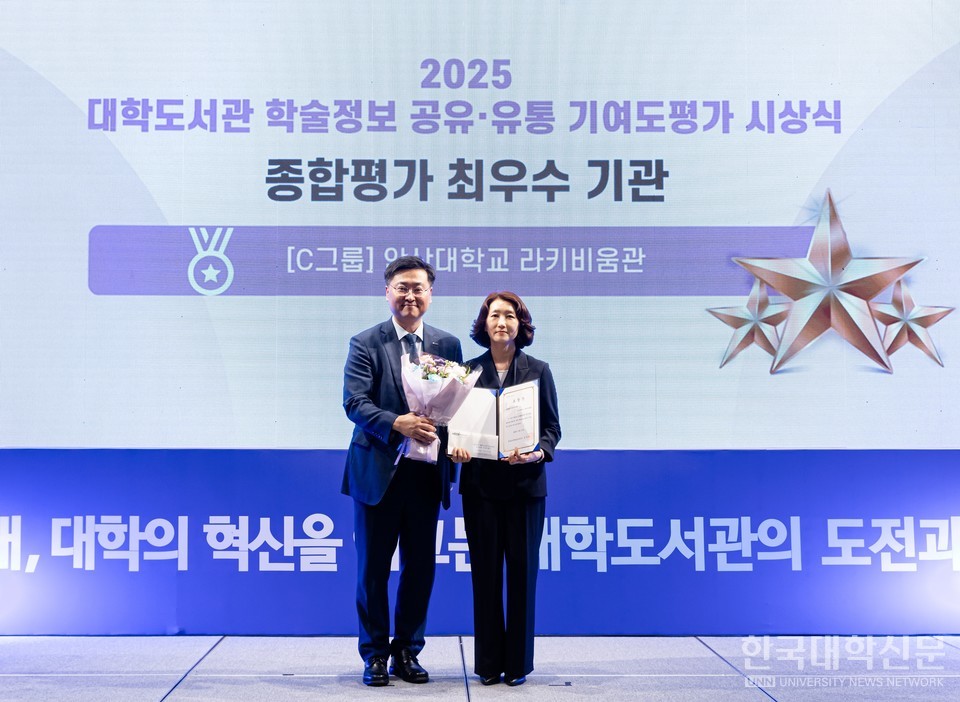 [한국대학신문 이서혜 기자] 안산대학교(총장 윤동열) 라키비움관이 교육부 산하 한국교육학술정보원이 주관하는 2025년 대학도서관 학술정보 공유·유통 기여도 평가에서 전문대학 전체가 속한 C그룹 종합평가 부문 ‘최우수 기관’으로 선정됐다.