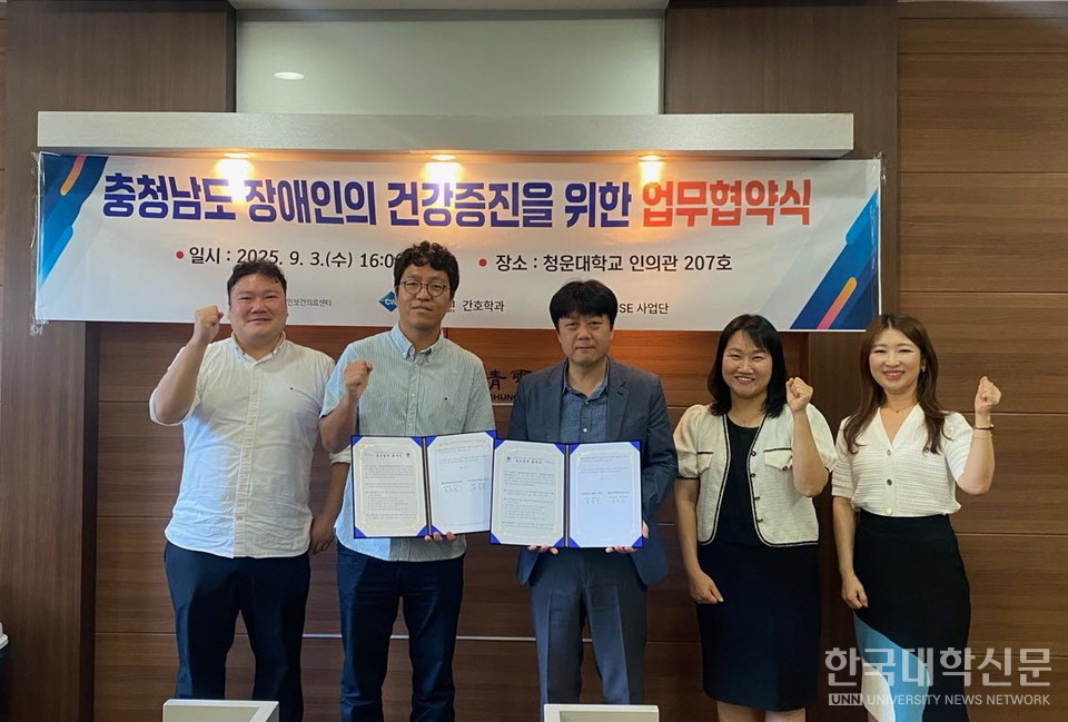 한편, 이날 업무협약식에는 청운대 최승묵 RISE사업단장, 장형숙 교수, 김정순 교수 등이 참석했으며, 충청남도지역장애인보건의료센터는 박영진 센터장, 김민우 팀장 등이 함께했다.