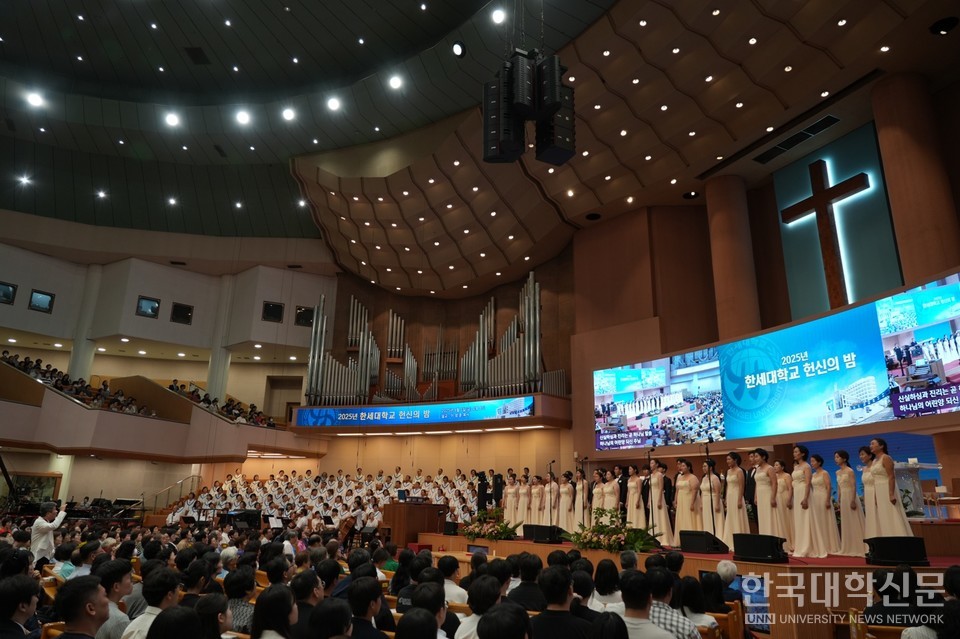 여의도순복음교회 대성전에서 진행된 헌신의 밤 행사는 한세대 2026학년도 수시모집 홍보영상으로 시작돼 최진탁 부총장의 대표기도에 이어 이영훈 위임목사의 ‘하나님이 기뻐하시는 신앙’이라는 제목의 설교 그리고 한세대 외빈 소개와 한세대 공식 홍보영상 상영에 이어 한세콘서트콰이어의 공연 순서로 진행됐다.