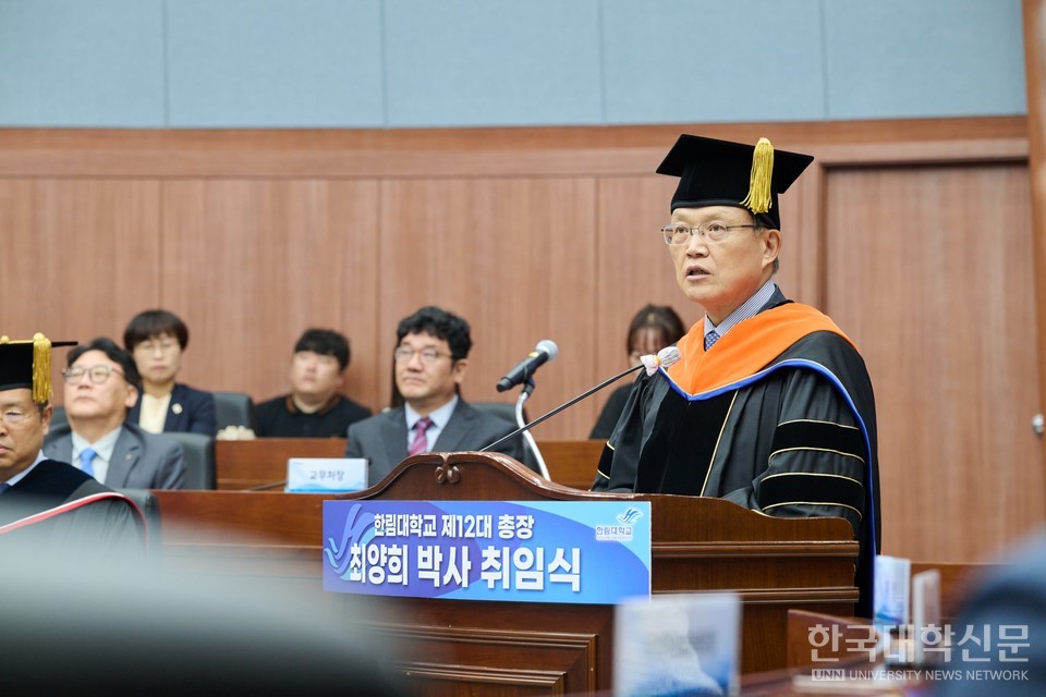 [한국대학신문 문화춘 기자] 한림대학교 제11대 총장에서 연임된 최양희 박사가 제12대 총장 취임식을 했다. 9월 1일부터 새로운 임기를 시작해 4년간 한림대 발전을 이끌어 간다.