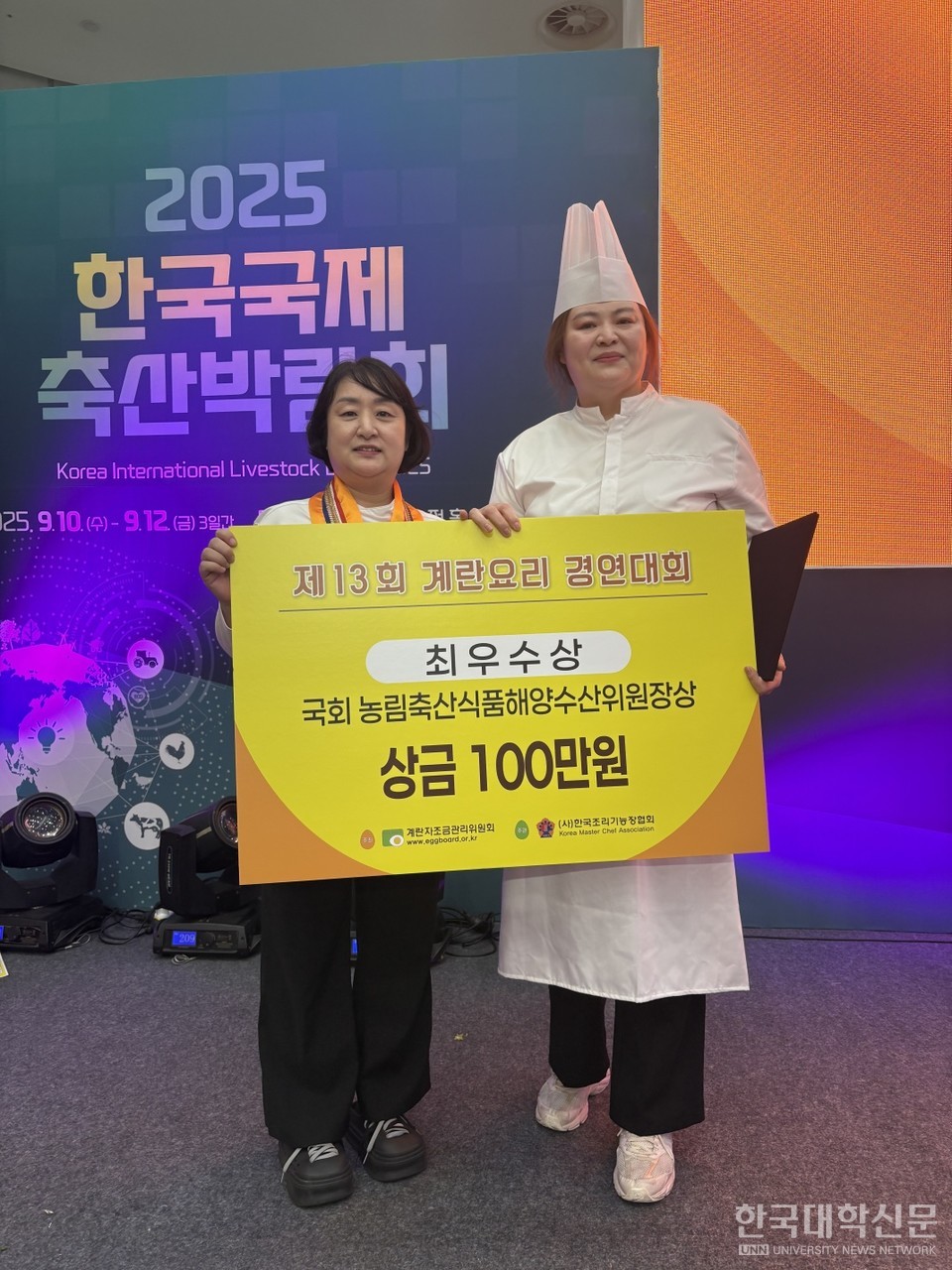 [한국대학신문 이서혜 기자]대구공업대학교(총장 이별나) 호텔외식조리계열은 10일 대구 EXCO에서 열린 조리기능장협회 주최 ‘2025 계란요리 경연대회’에서 참가팀 전원이 수상의 영예를 안았다.
