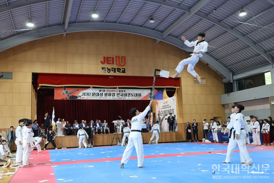[한국대학신문 이서혜 기자] 재능대학교(총장 이남식)는 지난 13일부터 14일까지 제물포캠퍼스 체육관에서 ‘제1회 재능대학교 총장기 JEIU 문대성 평화컵 전국태권도대회’를 성공적으로 개최했다고 밝혔다.