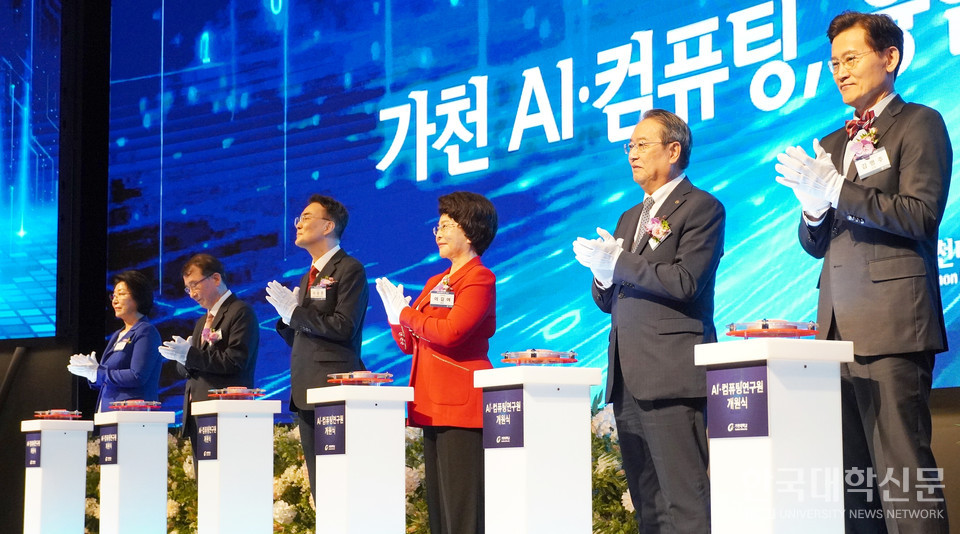 AI·컴퓨팅연구원을 설립한 가천대가 16일 교내 비전타워 가천컨벤션센터에서 AI·컴퓨팅연구원 개원식을 개최했다.
