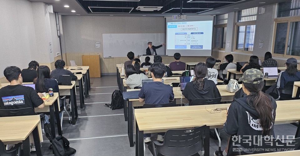 강의는 대기업 인사 및 채용 실무 경험을 가진 최영민 강사가 맡아 ‘스펙에서 직무역량으로’ 변화하는 채용 시장 흐름을 설명하고 기업들이 요구하는 공통 역량(문제해결력·팀워크·도전정신 등)과 직무별 전문 역량을 자기소개서에 효과적으로 담는 방법을 전수했다. 특히 STAR 구조 기반의 경험 정리와 DOMAIN 전략을 활용한 산업·직무 분석 방법을 소개해 학생들의 이해도를 높였다.