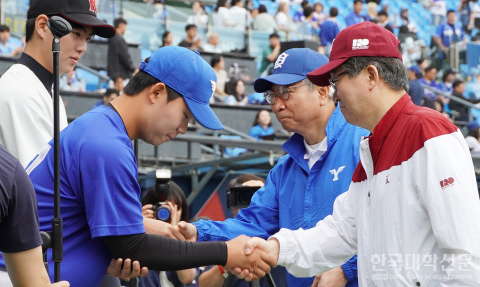 [한국대학신문 한명섭 기자] 영원한 맞수로 친선경기를 이어온 고려대와 연세대가 19일 서울 잠실야구장에서 ‘2025 정기 고연전’ 개막식을 개최했다.