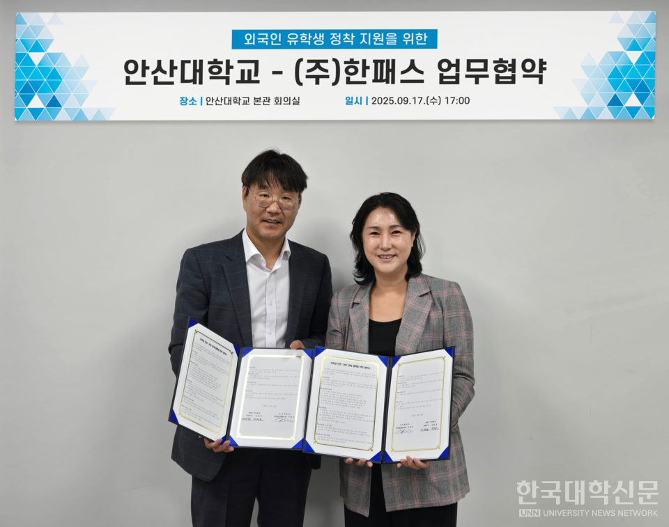 [한국대학신문 정수정 기자] 안산대학교(총장 윤동열)는 지난 17일 본관 회의실에서 글로벌 금융 플랫폼 기업 ㈜한패스와 외국인 유학생 진로 및 정주 지원 강화를 위한 업무협약을 체결했다고 밝혔다.