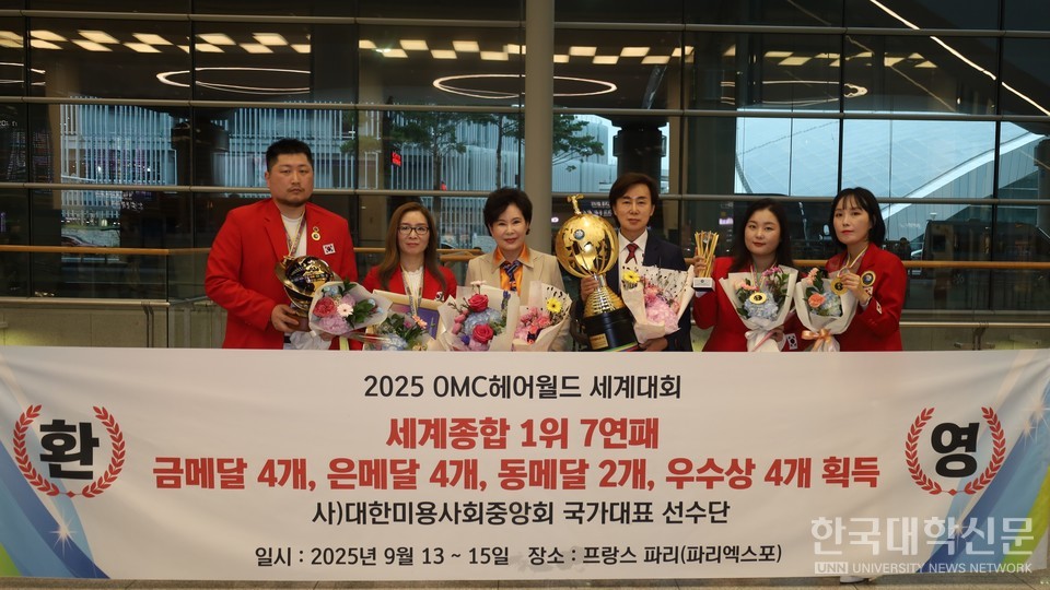 [한국대학신문 김영성 기자] 정화예술대학교(총장 한기정) 미용예술학부 ‘정화드림팀’ 박형대 수석코치가 지난 13일부터 15일까지 프랑스 파리에서 열린 ‘2025 OMC 헤어월드’ 대회에 대한민국 국가대표로 출전해 종합 1위 7연패라는 위업을 달성했다. 또한, 헤어바이나이트 1위, 크리에이티브 4위 등 우수한 성적을 거두며 K-뷰티의 저력을 세계에 과시했다.