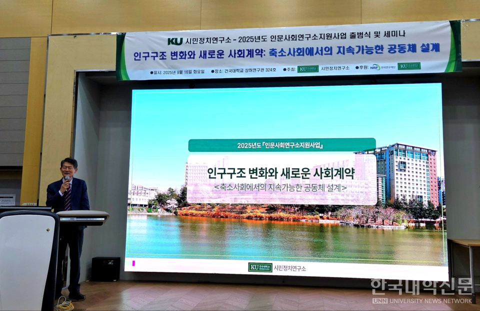 [한국대학신문 김경태 기자] 건국대학교(총장 원종필)는 지난 16일 교내 상허연구관에서 ‘건국대학교 시민정치연구소’ 출범식 및 세미나를 개최했다. 이번 행사는 한국연구재단의 ‘2025년도 인문사회연구소지원사업’ 선정에 따른 것으로, 연구소는 향후 6년간 15억 6천만 원을 지원받아 연구를 수행한다.